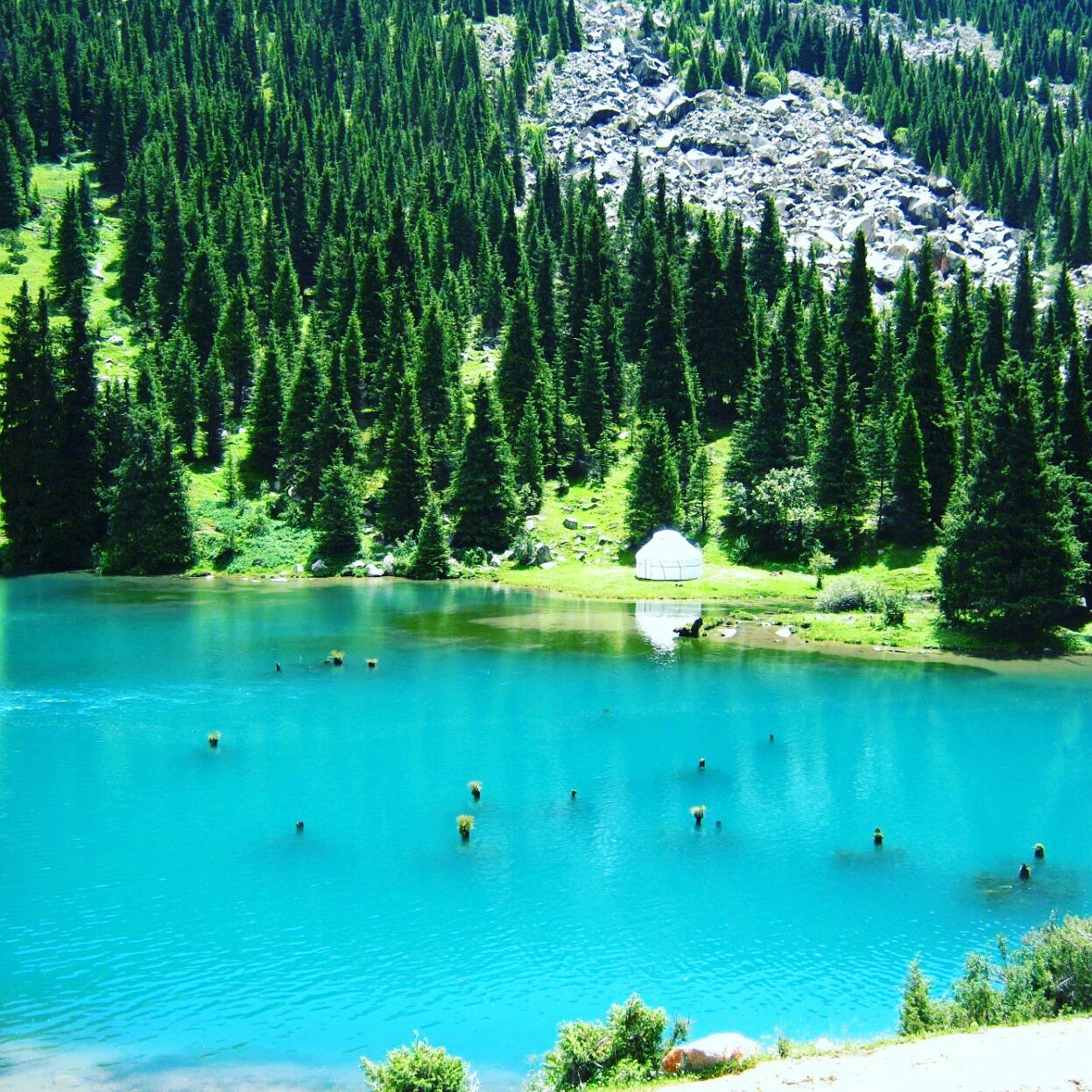 День второй: Утром, после завтрака мы отправляемся в глубь Джеты-Огузского ущелья, где посещаем знаменитый водопад "Девичья коса". Ближе к обеду заезжаем в город Каракол, посетим музей Н.М. Пржевальского. Следующая наша остановка будет в Ананьевском, Семёновском и Григорьевском ущелье, в Семёновском ущелье мы посетим Святое озеро, оно расположено в 30 км от границы с Казахстаном, в верховьях хребта Кюнгей-Ала-Тоо. Озеро образовалось в 1911 году во время Верненского землетрясения, оно имеет необыкновенный завораживающей красоты вид, особо потрясает лес, верхушки которого пробиваются через толщу воды. После посещения Святого озера мы въезжаем в Семёновскоеущелье. Доезжая до конца ущелья мы поднимаемся по перевалу и въезжаем в Григорьевское ущелье. К 18:00 часам вечера возвращаемся обратно.